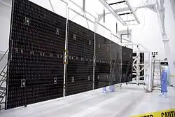 Additionally, large satellites require the use of large solar arrays to produce electricity. These solar arrays need to be broken down to fit in the geometric constraints of the launch vehicle the satellite travels on before being injected into orbit. Historically, solar cells on satellites consisted of several small terrestrial panels folded together. These small panels would be unfolded into a large panel after the satellite is deployed in its orbit. Newer satellites aim to use flexible rollable solar arrays that are very lightweight and can be packed into a very small volume. The smaller size and weight of these flexible arrays drastically decreases the overall cost of launching a satellite due to the direct relationship between payload weight and launch cost of a launch vehicle.[15]