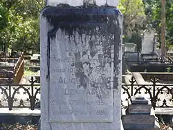 In 1866 a grant of 18 acres of land was made for the South Brisbane Cemetery by the Queensland Government.[6] The original trustees were Thomas Blacket Stephens, Albert John Hockings, William Theophilus Blakeney, William Henry Baynes and James Mooney.[7][8] The first person buried in the cemetery was Jane Hockings in July 1870.[2]