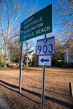 South Carolina Highway 903 (SC 903) is a 27.090-mile (43.597 km) primary state highway in the U.S. state of South Carolina. It connects Lancaster to Darlington, Florence, and the Grand Strand.