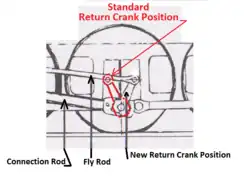 Its most distinguishing feature was that the cab and firebox were at the front of the locomotive instead of the traditional rear. This was done essentially by running a 2-8-8-4 machine backwards with appropriate modifications. The engineer and fireman swapped sides and faced away from the firebox. The tender remained behind the locomotive to maintain the improved forward vision; this was possible because the locomotive burned Bunker C fuel oil rather than coal, so the fuel could easily be piped from the tender to the firebox, unlike a coal-burning locomotive. The smoke box end coupling was strengthened. The power reverse lever (Johnson Bar) and steam throttle motion direction were reversed. The drive wheel axles were also reversed, end for end without rekeying the return fly cranks, to reverse the expansion link timing on both sides.[3]