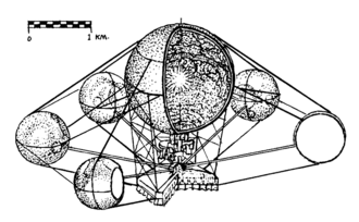 Space colonization has been in a broad sense referred to as space settlement, space humanization or space habitation.[12] Space colonization in a narrow sense refers to space settlements, as envisioned by Gerard K. O'Neill.[13] It is characterized by elements such as: settlement and exploitation,[14] as well as territorial claim.[15]