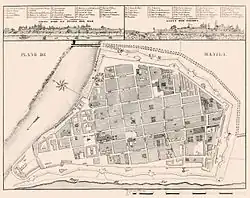 The traza or layout was the pattern on which Spanish American cities were built beginning in the colonial era. At the heart of Spanish colonial cities was a central plaza, with the main church, town council (cabildo) building, residences of the main civil and religious officials, and the residences of the most important residents (vecinos) of the town built there. The principal businesses were also located around this central plan. Radiated from the main square were streets in at right angles, a grid that could extend as the settlement grew, impeded only by geography.[9] About three decades into colonization of the New World, the conquistadores started to build and plan cities according to laws prescribed by the monarchs in the Laws of the Indies. In addition to describing other aspects of the interactions between the Spanish conquerors and the natives they encountered, these laws ordained the specific ways new settlements should be laid out. In addition to specifying the layout, the laws also required a pattern in settlement based on social standing, in which the people of higher social status lived closer to the center of the town, the center of political, ecclesiastical, and economic power. The 1790 census for Mexico City indicates that in the traza that there was indeed a higher concentration of Spaniards (españoles), but that there was no absolute racial or class segregation in the city, particularly since elite households usually had non-white servants.[10]