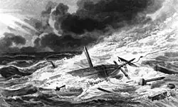 In 1836, Stirling Castle was under the command of Captain James Fraser.[3][Note 1] She ran aground on 25 May 1836 on the Swain Reefs (near present-day Rockhampton, Queensland) while travelling from Sydney to Singapore.[4] The surviving members of the crew, including Fraser and his wife Eliza, managed to journey to the nearby Fraser Island (which at that time was known as Great Sandy Island) where they camped for several days before being taken captive by the local Butchulla group of Aboriginal people, who took from them their clothes and belongings and used them for forced labour.[4] James Fraser died while in their captivity (accounts differ as to whether he died due to starvation, or as a result of being speared), however, Eliza Fraser, who had been subjected to "the most terrible and revolting sufferings" and some members of the crew were later rescued by a Lt. Charles Otter.[5][6][7] Lloyd's List reported on 14 March 1837 that Stirling Castle, Fraser (late), master, had been totally lost on Eliza Reef.