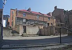 Susannah Place is a small early Victorian Georgian terrace row of four dwellings which includes a former corner shop. It is bounded on the north by a row of terraces built In 1912, on the west by Gloucester Street, on the east by Cambridge Street and on the south by Cumberland Place. The present level of Gloucester Street is four steps higher than the area immediately in front of Susannah Place and the ground floor level in the houses is another step below this.[1]