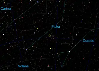 TOI-1338 is a binary star system located in the constellation Pictor, about 1,320 light-years from Earth. It is orbited by two known circumbinary planets, TOI-1338 b, discovered by the Transiting Exoplanet Survey Satellite (TESS)[2] and BEBOP-1c, discovered by the Binaries Escorted By Orbiting Planets project.[6]