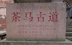 - ^ "泸州茶马古道上的"国宝"". 泸州新闻网. 2013-11-22. Archived from the original on 2014-07-08. Retrieved 2017-10-02.