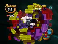 Gameplay screenshot of Rescue Mode, where the player must destroy layers of bricks to reach the sphere's core and free a trapped robot.