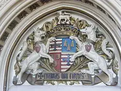 Adjoining the bar area is the banqueting hall, completed in October 1869 by Edward Pugin. The centre-piece of the hall is a massive fireplace inscribed with the motto "pile on the logs to make the fire great". The fireplace is still in situ and cost over £250 in 1869.[16] The hall has a segmented ceiling, and the floorboards are laid with New Zealand pine. The banquet hall is listed on The Ramsgate Society's Buildings at Risk Register.[17]