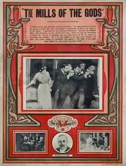 The Mills of the Gods is an American silent film. It was the first three-reel "feature" directed by Ralph Ince; production company Vitagraph entrusted him with this longer project after being impressed by his work on the two-reel Double Danger.[1]