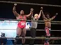 2. ^ During their first two reigns, Big E, Kofi Kingston, and Xavier Woods were all recognized as champions under the Freebird rule; however, only Kingston and Woods are recognized as champion after October 2020, as during the 2020 WWE Draft, Kingston and Woods were drafted to Raw while Big E remained on SmackDown, splitting Big E from the team.