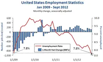 This image shows U.S. employment statistics changes from January 2009 to September 2012.