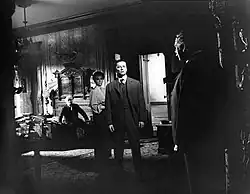 Journalist Jesse Fox Mayshark wrote that, like the similarly titled The Magnificent Ambersons, Anderson's story follows an older mother considering remarriage, creating a stir in the family.[35] Professor Claire Perkins added that in The Royal Tenenbaums, this tension regarding a possible remarriage has minor class and racial elements, with Chas refusing to call Henry by his first name and Royal calling Henry an "old black buck".[36] Royal also calls Henry "Coltrane" and speaks jive, drawing on racial stereotypes found in media.[37] To The Magnificent Ambersons' family-drama template, Mayshark wrote that Anderson added his "naturally redemptive instincts", stressing "forgiveness" over villainizing the guilty.[38] Royal's "redemption" is a central theme.[8][39][40] Professor Carl Plantinga assessed Royal's motives as shifting from "purely selfish" considerations to genuine hopes for reconciliation when he is removed from the home after his false illness is exposed.[41] Perkins observed that before Royal's death, he had endeared himself to each Tenenbaum in some way.[42] To do this, he had to force his way back into the family's lives as an intruder professing an intent to "make up for lost time".[36] The prospect of Royal and Etheline rekindling their marriage is largely regarded as impossible, though she weeps at Royal's false terminal illness, and Royal inquires about her "love life".[43] In the end, the "ritual community celebration signalling successful social integration" that is a staple of comedy endings comes in the form of Etheline's marriage to Henry rather than a remarriage to Royal, Plantinga wrote.[44]