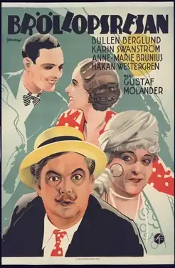 The Wedding Trip (Swedish: Bröllopsresan) is a 1936 Swedish comedy film directed by Gustaf Molander and starring Håkan Westergren, Anne-Marie Brunius and Karin Swanström.[1] It was shot at the Råsunda Studios in Stockholm and on location in Copenhagen and on the French Riviera. The film's sets were designed by the art director Arne Åkermark. It is based on the 1932 play Da stimmt was nicht by Franz Arnold.