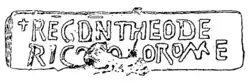 - ^ reconstructed Gothic: *𐌸𐌹𐌿𐌳𐌰𐍂𐌴𐌹𐌺𐍃, romanized: *Þiudareiks; Medieval Greek: Θευδέριχος, romanized: Theudérikhos; Latin: Theoderīcus.