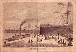 The steamship Mosel belonged to the North German Lloyd company and on December 11, 1875 it was to set off for New York under Captain Leist, the originally assigned captain Hermann Neynaber having taken ill. It had 400 passengers mostly from Germany who had already boarded and it was towed by the tug Simson and was being temporarily docked to load some cargo. A large number of onlookers were assembled including those that had come to bid farewell to the passengers. One of the large packages of cargo to be loaded was armoured in iron and weighed 650 kg (1,430 lb). It was claimed to contain caviar worth 3,000 marks. A large barrel which broke off from the cargo being lifted by the crane struck the pavement and exploded at 11 AM. The immense blast blew a hole in the ship and caused a 4-metre (13 ft) deep crater on the quay. The explosion was heard miles away and a large black cloud arose and many people lay screaming. Inspection of one of the cabins six hours later at 5 pm led to the finding of blood-covered passenger named William King Thomas in the first class cabins. Initially thought to be a passenger he was found with a pistol and he had shot himself twice but survived.[1]