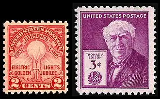 172. ^ "Thomas A. Edison Issue". U.S. Post office; Smithsonian National Postal Museum. Retrieved November 23, 2023.