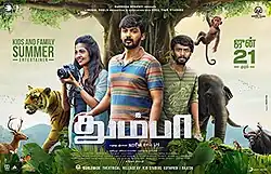 Thumbaa is a 2019 Indian Tamil-language adventure film written and directed by Harish Ram L. H. on his directorial debut. The film stars Darshan, newcomer Keerthi Pandian and Dheena. Produced by Surekha Nyapati, the film was distributed by KJR Studios. The film is set against the backdrop of Western Ghats, and mostly consists of VFX and computer graphics.[1] Principal photography began on 27 December 2018, and was completed on 11 April 2019.[2]