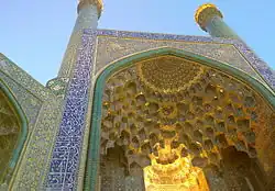 One of the best known architectural masterpieces of Iran is the Shah Mosque in Isfahan, from the 17th century. Its dome is a prime example of tile mosaic and its winter praying hall houses one of the finest ensembles of cuerda seca tiles in the world. A wide variety of tiles had to be manufactured in order to cover complex forms of the hall with consistent mosaic patterns. The result was a technological triumph as well as a dazzling display of abstract ornament.[7]