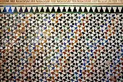 The elaborate and colourful zellige tessellations of glazed tiles at the Alhambra in Spain that attracted the attention of M. C. Escher