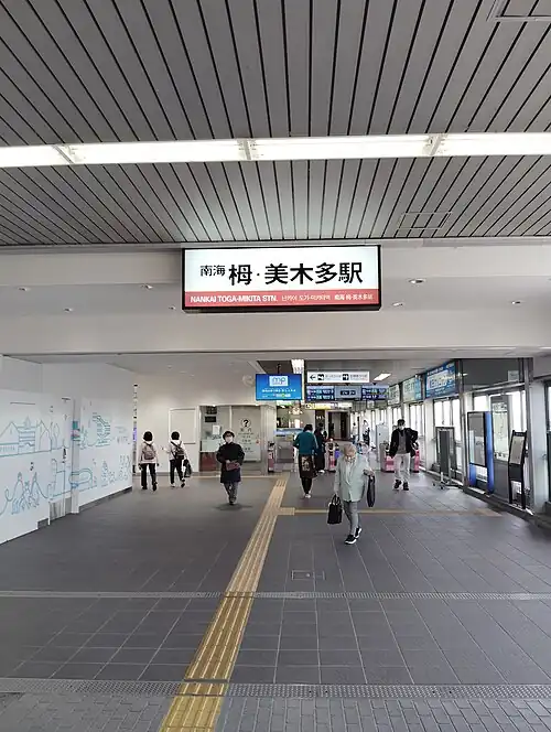 Toga-Mikita Station (栂・美木多駅, Toga-Mikita eki) is a passenger railway station located in Minami-ku, Sakai, Osaka Prefecture, Japan, operated by Nankai Electric Railway. It is station number NK90.