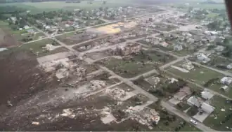 Aerial view of EF4 damage in Pilger, Nebraska.