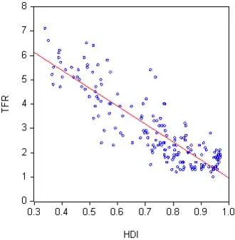 Total fertility rate vs Human Development Index for selected countries, 2011