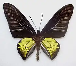 Troides rhadamantus, the tropical golden birdwing,[2] is a birdwing butterfly that inhabits the Philippines. The species was first described by Hippolyte Lucas in 1835. There are many subspecies on islands of the Philippines and some authors consider Troides plateni and Troides dohertyi as subspecies of T. rhadamantus.