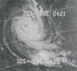 According to a study from 1989, on average two storms pass within 320 km (200 mi) of Réunion or Mauritius each year, with a landfall about every five years.[2]