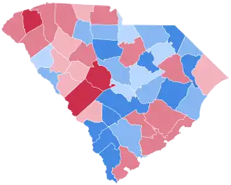 This marked the first time that a Democratic nominee was elected twice without winning South Carolina either time. Once a Democratic bastion with a tiny all-white electorate, the state has moved towards the Republicans after their party was taken over by conservatives and Southerners in the 1980s and 1990s. No Democrat has won the state since 1976, and it is now considered one of the safest red states.