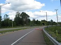 Midway between Essex Way and the riverbank, several unused ramps intended for an interchange with Allen Martin Parkway extend outward from VT 289.[1][3] The highway continues south to the Winooski River, where it terminates at a partial interchange with VT 117 east of Essex Junction.[3] VT 289 is the first road in Vermont to have mile-based exit numbering.