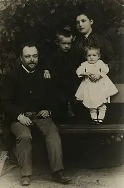 In 1884, Zubov married Sofija Bilevičiūtė from an old family of Samogitian nobles.[1] She was cousin of Józef Piłsudski, head of state of independent Poland, and sister-in-law of Stanisław Narutowicz, signatory of the Act of Independence of Lithuania.[20] They had two children: son Vladimiras (1887–1959), an agronomer, and daughter Aleksandra (1891–1961).[1] The marriage was not happy and they divorced in 1911. Sofija remained in Ginkūnai while Zubov moved to Medemrodė.[2] Zubov remarried Vera Ušakova-Belskienė (1877–1941) who divorced engineer Vaclovas Bielskis.[21] She organized courses on sewing, handicraft, and house work for local youth. She was deported to Siberia during the June deportation in 1941 and died six months later in Tenga, Altai Republic.[22]
