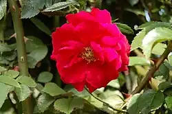 During the Second World War Wilhelm Kordes II crossed the East Asian Rosa wichurana with the Japanese Rosa rugosa eventually to obtain a new species, Rosa kordesii, able to withstand the harsh winters of north Germany. From it he later bred such famous post-war varieties as 'Parkdirektor Riggers,' 'Leverkusen,' Hamburger Phönix' and 'Heidelberg.' "The dark, glossy foliage of many modern roses can be traced back to 'Kordesii'."[1]
