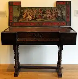 A virginal, the musical instrument played by Walter Erle, this one contemporaneous with his life, made in Venice in 1566. Germanic National Museum, Nuremberg