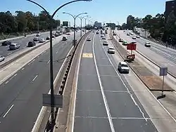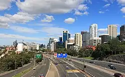 Warringah Freeway is a 3.5-kilometre (2.2 mi)[1] divided freeway in Sydney, New South Wales, Australia that is part of the Sydney Orbital Network. The primary function of the freeway is to provide an alternative high-grade route from the Sydney Harbour Tunnel and Bradfield Highway at Milsons Point to the A8 and Gore Hill Freeway. The freeway reduces traffic demands on Pacific Highway throughout Sydney's Lower North Shore, bypassing North Sydney and Crows Nest,[3] and provides a vital link to access most of the suburbs in Sydney and is also a major route to the north, south, east and west of the central business district.