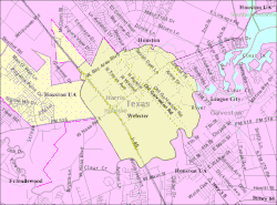Webster is a city in the U.S. state of Texas located in Harris County, within the Houston–The Woodlands–Sugar Land metropolitan area. Its population was 12,499 at the 2020 U.S. census.[4][5]