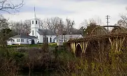 Downtown Wetumpka covers two city blocks, and is bordered on the northwest by the Coosa River. The Bibb Graves Bridge crosses the river here, and is the city's most recognizable landmark. Directly across the bridge are the city's three antebellum churches, the First Methodist, First Presbyterian, and First Baptist. On January 19, 2019, a tornado destroyed the First Presbyterian church and badly damaged the first Baptist church.[22][23]