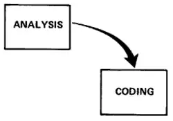 Royce had determined that the development of computer programs regardless of size or complexity could be split into two development stages: Analysis and Coding. For small software development projects these two steps were sufficient, but not for the development of larger software systems. These require many additional steps back and forth, which gives the development an iterative character.[3]