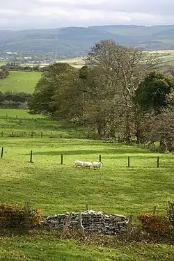 Ystrad Meurig (or Ystradmeurig) is a village and community in Ceredigion, Wales. It lies on the B4340 road northwest of the town of Tregaron, on the edge of the Cambrian Mountains.