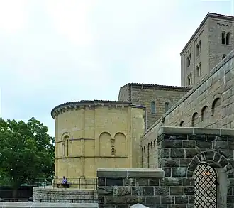 El ábside se construyó a partir de más de 3300 bloques de piedra individuales, principalmente arenisca y piedra caliza,[7] que se enviaron a Nueva York en 839 cajas individuales.[8] Fue una instalación tan importante y grande en los claustros que requirió una remodelación completa de la antigua "Sala de exposiciones especiales". Se abrió al público en 1961, siete años después de la transferencia, su reinstalación fue una empresa innovadora importante e innovadora. El nuevo espacio busca emular una nave de un solo pasillo.[9]