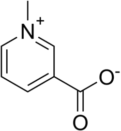 Este sólido incoloro y soluble en agua es un derivado de la piridina con un grupo carboxilo (COOH) en la posición 3.[23] Otra forma de la vitamina B3, la amida nicotinamida, reemplaza el grupo carboxilo por un grupo carboxamida (CONH