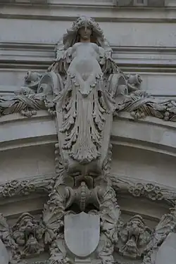 - Algunas de las ornamentaciones del edificio la Adriática en la Plaza de Callao.
