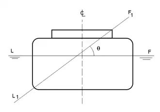En la figura de la derecha se muestra una embarcación con una inclinación en la cual la superficie del agua alcanza el borde de una tapaescotilla. Flotación