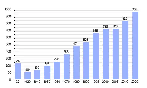 | Gráfica de evolución demográfica de Árbol Grande entre 1921 y 2020 |