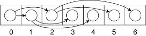 En el caso de un árbol binario casi-completo (o un árbol completo), puede utilizarse un sencillo arreglo de enteros con tantas posiciones como nodos deba tener el árbol. La información de la ubicación del nodo en el árbol es implícita a cada posición del arreglo. Así, si un nodo está en la posición i, sus hijos se encuentran en las posiciones 2i+1 y 2i+2, mientras que su padre (si tiene), se encuentra en la posición truncamiento((i-1)/2) (suponiendo que la raíz está en la posición cero). Este método se beneficia de un almacenamiento más compacto y una mejor localidad de referencia, particularmente durante un recorrido en preorden. La estructura para este caso sería por tanto: