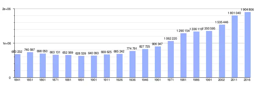 | Gráfica de evolución de Área del Gran Dublín entre 1841 y 2016 |