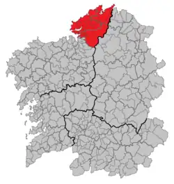 - Comarca de Ortegal: 4 municipios, 12.531 habitantes, 394,3 km².