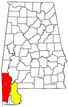 ![]() El Área Estadística Metropolitana Combinada de Mobile-Daphne-Fairhope CSA y sus componentes: