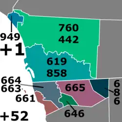 Para comunicación entre San Diego y Tijuana vía teléfono, se debe marcar como una llamada internacional. Para llamar fuera de los Estados Unidos se debe primero marcar "011" (Prefijo internacional de EUA) después el prefijo de México, "52", el código de área después los siete dígitos. Por ejemplo, para llamar al número (664) 555-1234 en Tijuana desde un teléfono de Estados Unidos se debe marcar 011-52-664-555-1234.