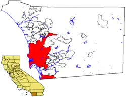 Población de las ciudades de San Diego del censo de 2010.[3] Los datos de las ciudades de Baja California son de datos del censo de 2020 por el INEG.[4]