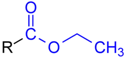 Los ésteres etílicos son compuestos químicos que pertenecen al grupo de los ésteres. Se forman por esterificación de un ácido carboxílico o un oxoácido inorgánico con etanol y tienen el grupo éster funcional característico. Además de los ésteres de ácido carboxílico, los ésteres etílicos también incluyen ésteres de ácido carbónico y ésteres derivados de ácidos sulfónicos y etanol. De forma análoga, los ésteres etílicos también pueden formarse a partir de ácido nítrico, ácidos sulfínicos, ácidos fosfónicos o ácidos fosfínicos por un lado y etanol por otro. El ortoformiato de trietilo, HC(OC2H5)3, es un representante bien conocido de los ésteres de ácido ortocarboxílico.[1]